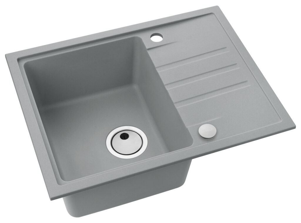 Läpivärjätty betoninharmaa materiaali on laadukasta Granital -kivikomposiittia.
