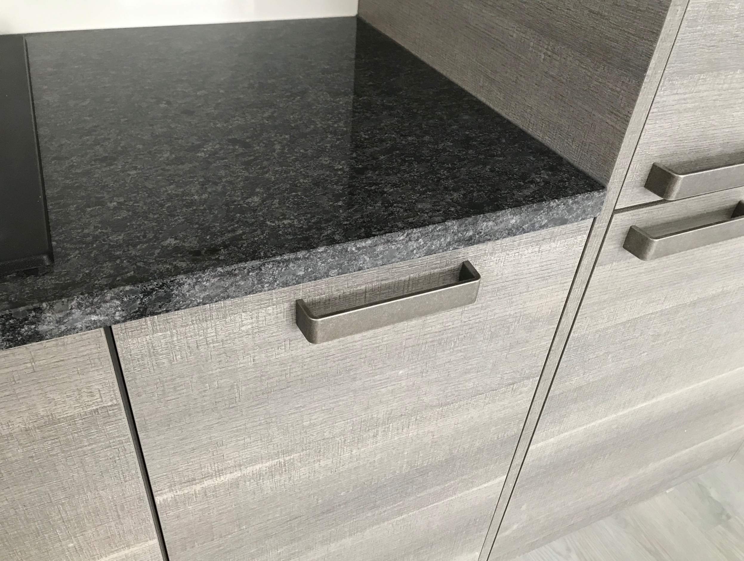 Hohde –  maailmalla nimellä Steel Grey – harmaa graniittitaso on vahvan, aidon luonnonkiven ystävän valinta. Sen isot kiteet ja niistä eri kulmissa heijastuva valo tuovat kiveen glittermäisyyttä, joten kiven yleisilme on samalla jämäkkä sekä kevyt.
