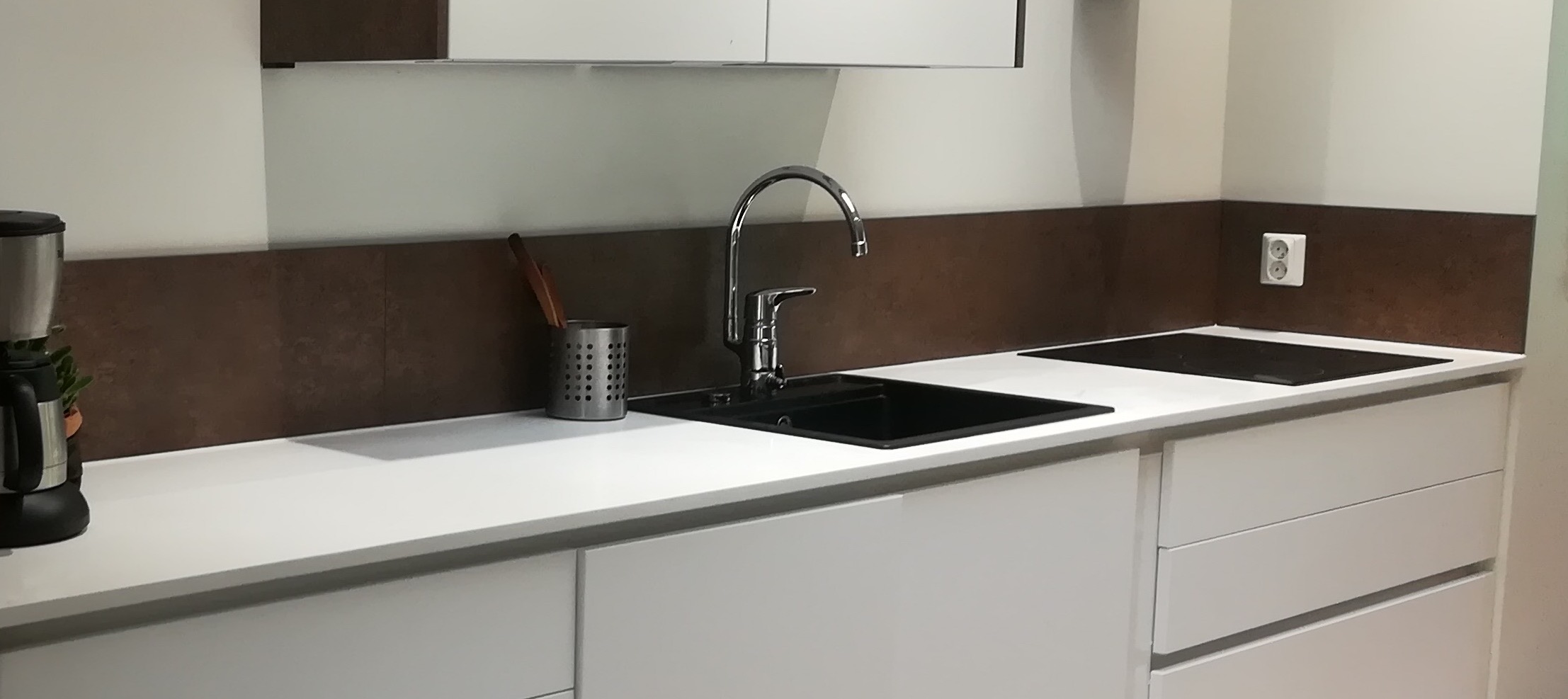 - Keittiötasomateriaalin syvyys on 635 mm ja se hinnoitellaan juoksumetreittäin. Juoksumetrihintaan sisältyy kavennus keittiösi tarvitsemaan syvyyteen sekä yhden pitkän reunan hionta ja kiillotus.