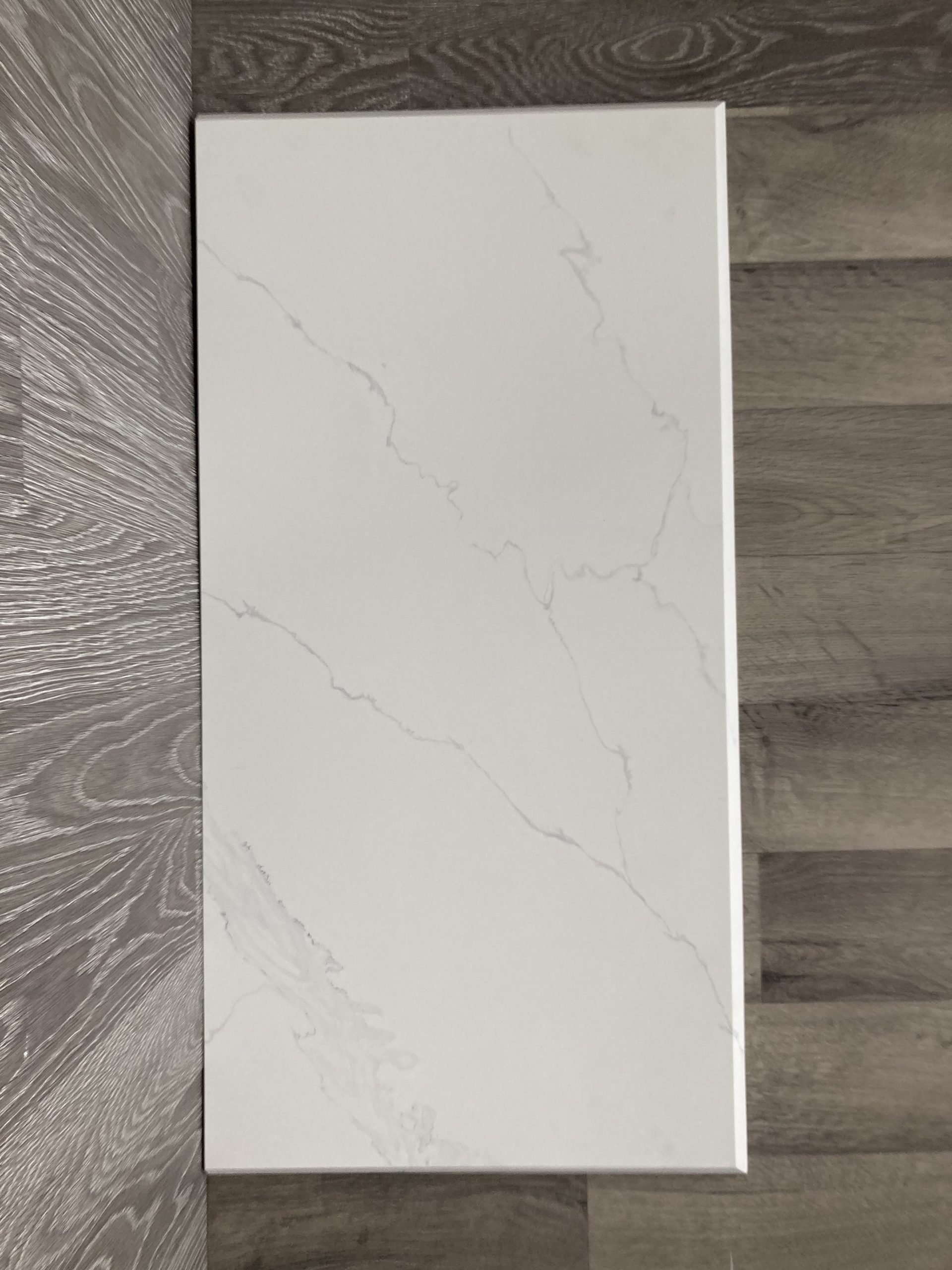 Tulisijan tai takan eduskivet kauniista 20 mm paksusta Carrara Vein -kvartsista.